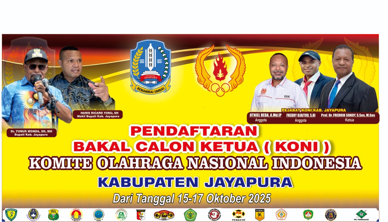 Suara Tabi – Penjaringan bakal calon Ketua KONI Kabupaten Jayapura resmi di tutup pada tanggal 17 Oktober 2025. Otniel Deda, A.Md.IP., Ketua Panitia Musyawarah Olahraga Kabupaten Luar Biasa ( Musorkablub ), kepada media ini mengatakan bahwa ada dua orang yang resmi terdaftar untuk maju sebagai calon. Otniel Deda melalui media ini pada Sabtu, 18 Oktober […]