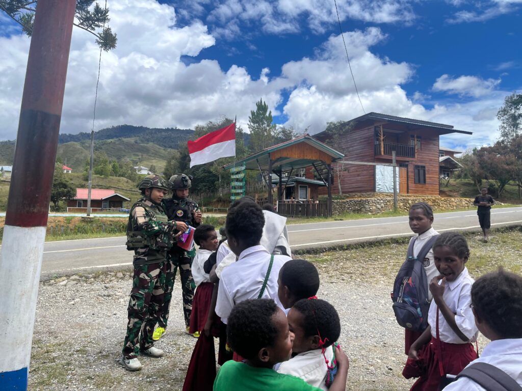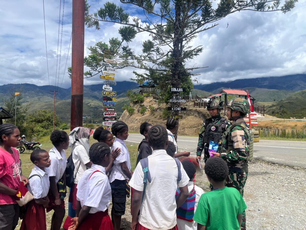 Suara Tabi – Jayawijaya, Keceriaan tampak menyelimuti wajah anak-anak ketika mereka pulang sekolah dan mendapati personel TNI Satgas Yonif 521/DY di depan Pos Napua, Distrik Napua, Kab. Jayawijaya, Papua Pegunungan (25/08/2025), dengan membawa kejutan Untuk menghibur sekaligus mengedukasi dan memberikan kuis menarik yang disambut antusias oleh anak-anak.
