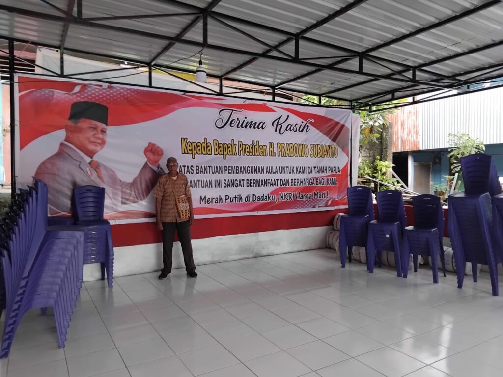 Melianus Mofu Kepala Suku saat berada di Bangunan Bantuan Presiden Prabowo Subianto