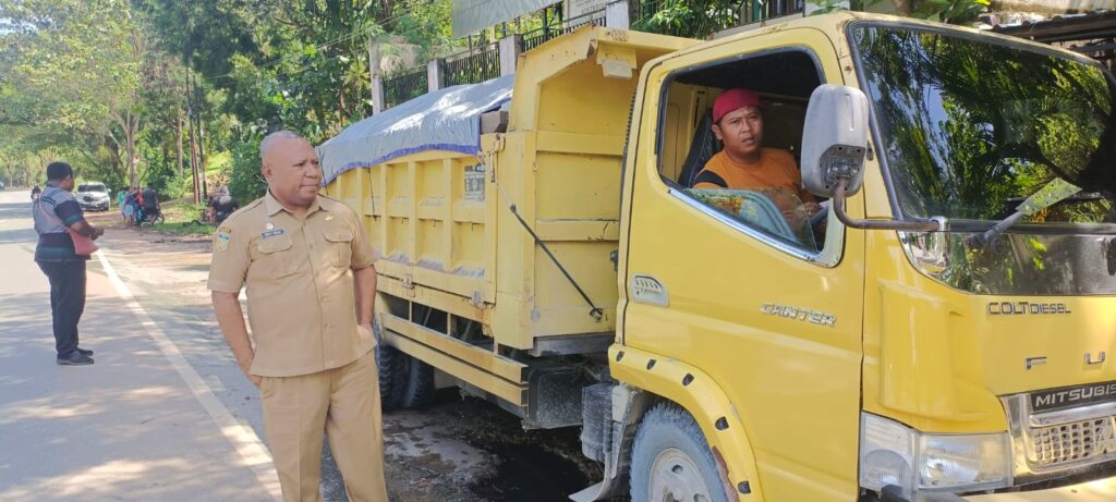 Nampak Kepala Bandan (Kaban) Pendapatan Daerah (Bapenda) Saat Menyapa Sekaligus Mengasosiasikan Rencana Penerapan Pengunaan Barcode Truk Pengangkut Material Yang Keluar Dari Kabupaten Jayapura