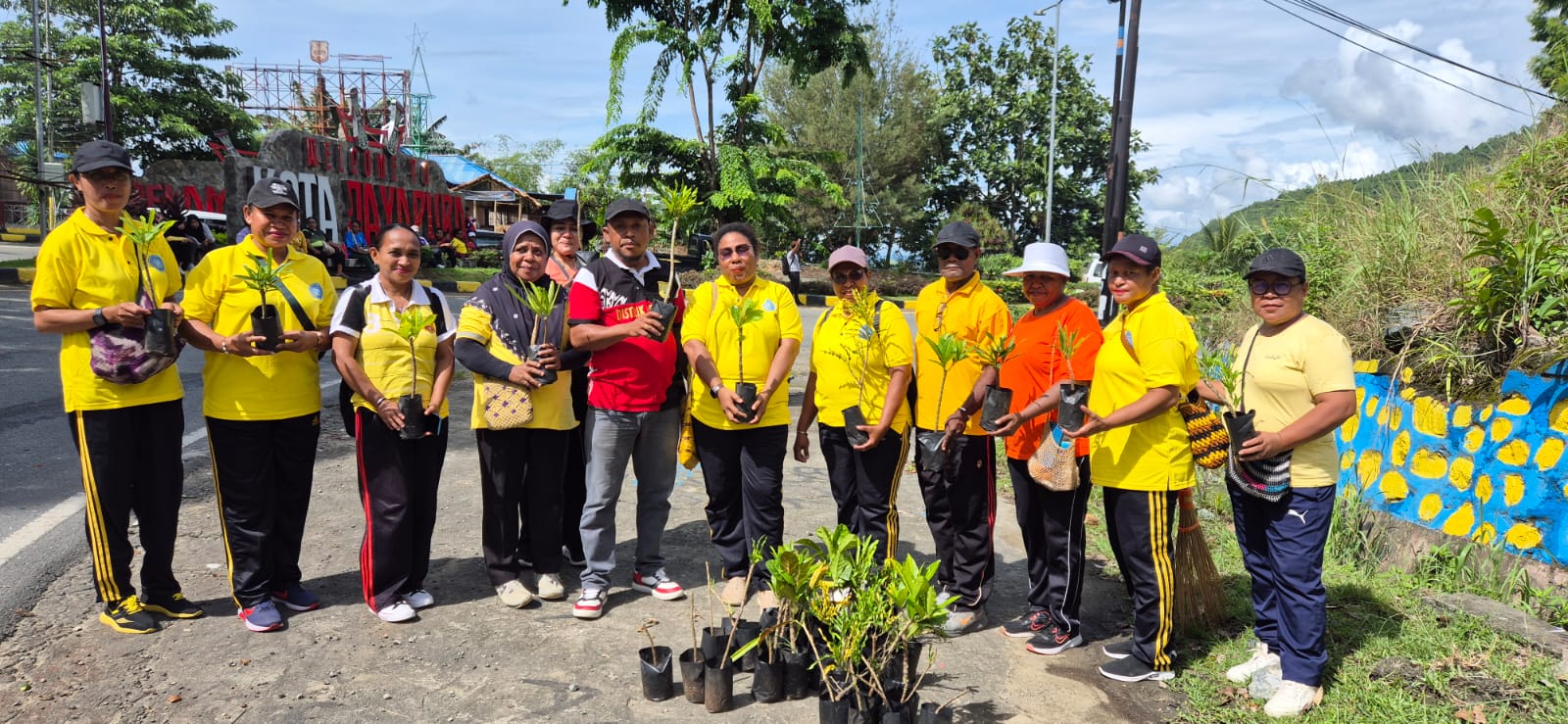 Gelar Kerja Bakti, Distrik Heram Tanam Puluhan Koker Bunga Puring