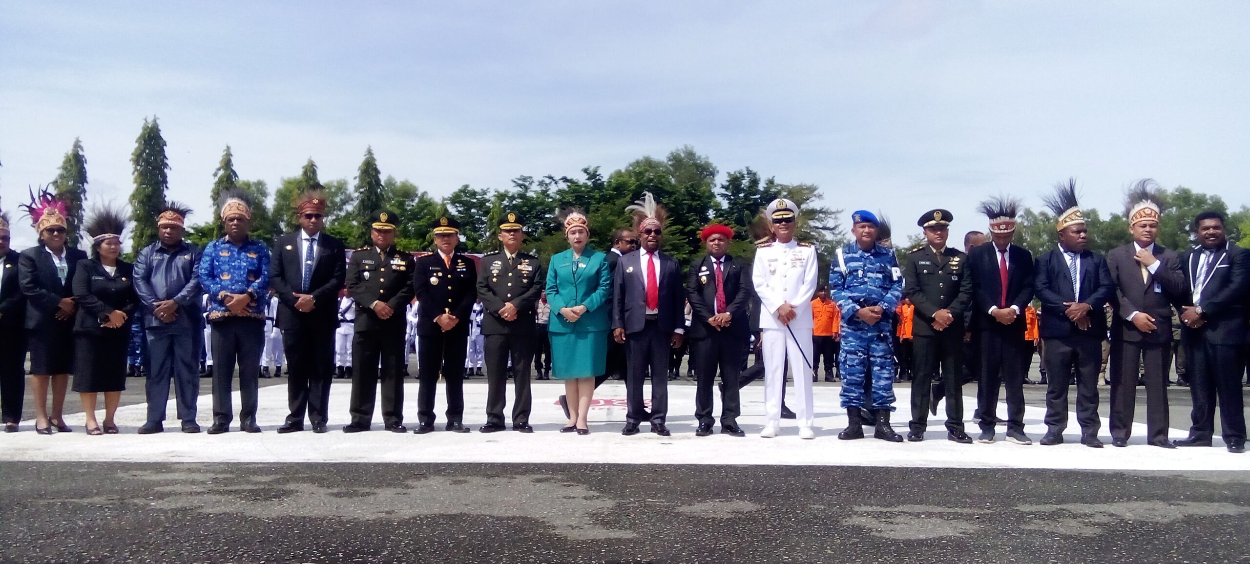 Dr. Yunus Wonda, SH.SH., Bupati Jayapura di hari Kesaktian Pancasila pada Rabu, 1 Oktober 2025 di Jayapura, Ia mengingatkan, kepada seluruh lapisan masyarakat yang ada di Kabupaten Jayapura harus benar-benar mewujudkan makna Pancasila sebagai wadah persatuan.