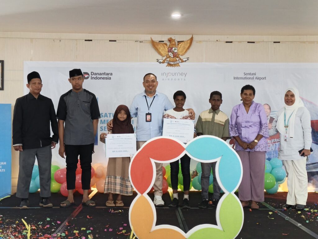 Suara Tabi – Sentani, Dalam Rangka HUT PT Angkasa Pura Indonesia Ke – 1 Bandara Sentani menyalurkan bantuan sosial kepada Anak Yatim Piatu. Bantuan yang di berikan berupa santuan kepada anak yatim juga bantuan sembako bagi Panti Asuhan Holei Roo dan Panti Asuhan Hidayatullah, Jumat (18/09/2025).