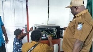Kunjungan Langsung dari Kepala Dinas Kominfo Kabupaten Jayapura Gustaf Griapon ST.MM ke SD YPK AMAI Kampung Tablasupa Selasa 22/10/2025 melihat langsung kerusakan pada alat VSAT internet yang di laporkan warga setempat pada 22/10/2025