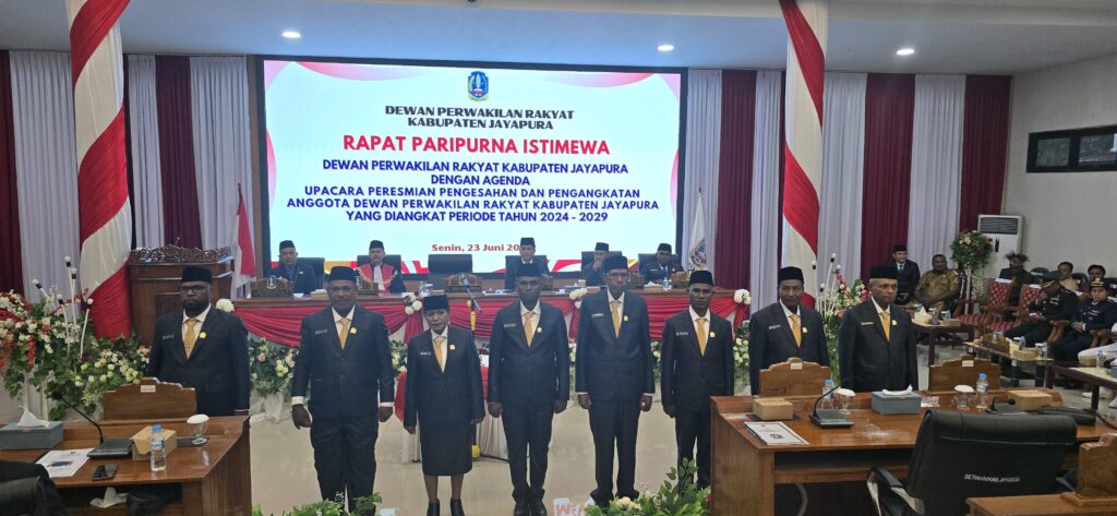 ” Jadi setelah dilantik, DPR ini tidak lagi kami sebut DPR pengangkatan, semua mereka adalah anggota DPR Kabupaten Jayapura yang berjumlah 38 orang, secara aturan mereka punya tugas dan fungsi yang sama, mereka juga mendapat hak yang sama, jadi tidak lagi ada yang membedakan DPR pengangkatan dan DPR melalui mekanisme pemilihan”, tutur Piet Soyan.