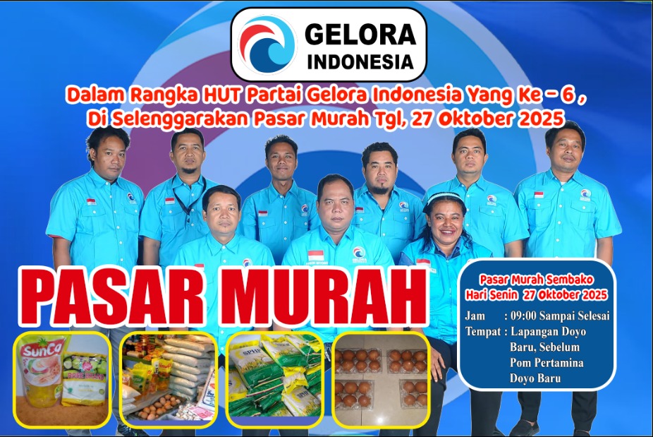 Suara Tabi – Partai Gelombang Rakyat ( Gelora ) kini memasuki usianya yang ke – 6 tahun, tepat pada tanggal 28 Oktober 2025, tentunya setiap daerah merayakan dengan berbagai kegiatan yang berbeda – beda, untuk DPD Partai Gelora Kabupaten Jayapura sendiri menggelar Pasar Murah.