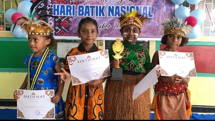 Sentani 03 Oktober 2025. TK RIA Pembangunan yang terletak di jalan masuk bandara Sentani mengadakan lomba Fashion Show dalam rangka Hari Batik Nasional pada Hari Senin 02 Oktober 2025 kemarin.
