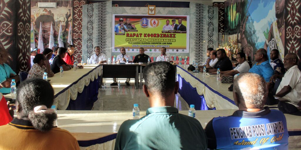 Rapat koordinasi persiapan pelaksanaan Musorkablub KONI dipimpin langsung oleh Fredrick Sokoy selaku Plt Ketua KONI Kabupaten Jayapura dan didampingi dua anggota KONI Kabupaten Jayapura lainnya yang ditunjuk langsung dari KONI Provinsi Papua. Untuk mengecek persiapan pelaksanaan Musorkablub.