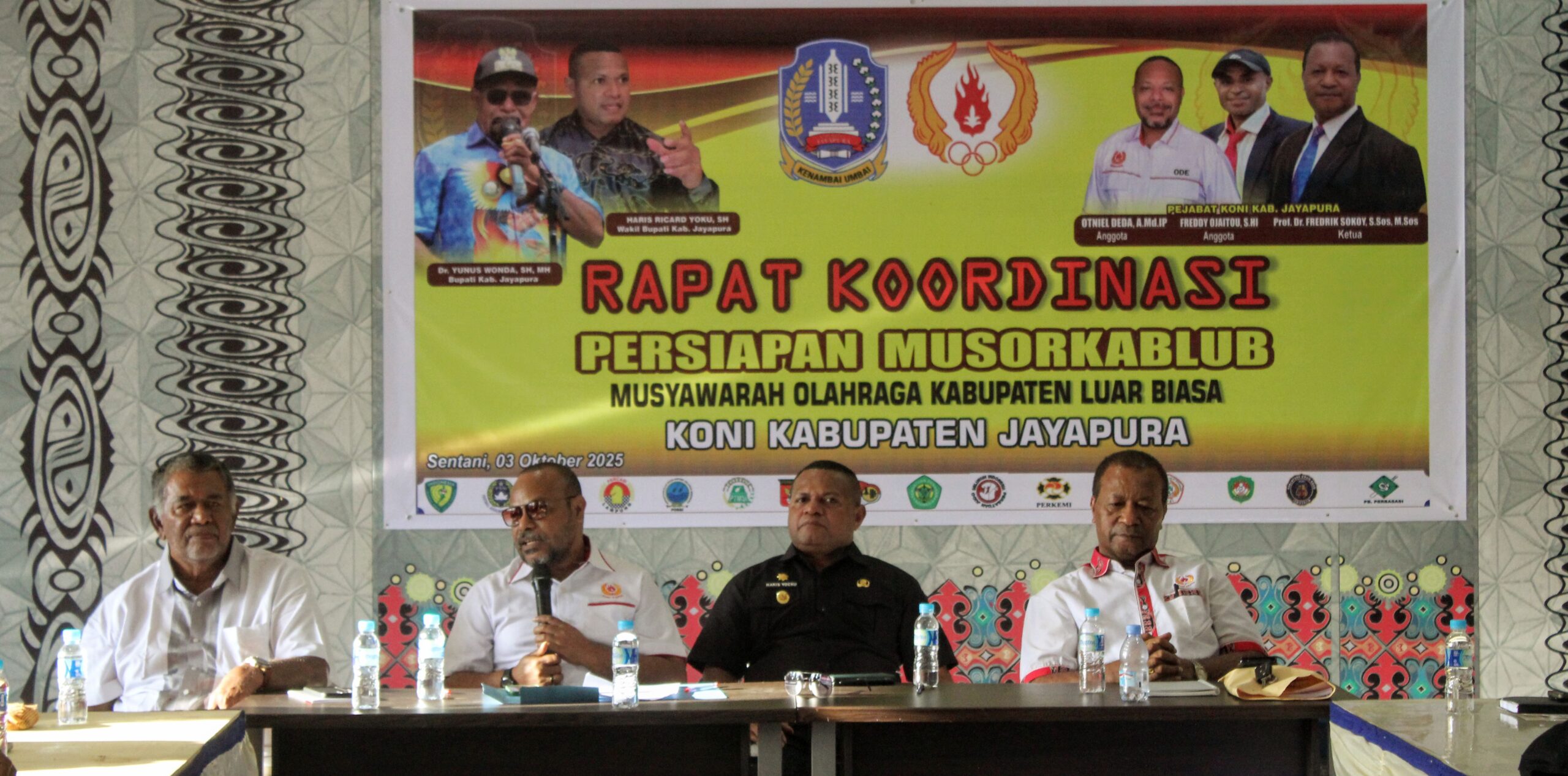 Otniel Deda Ketua Panitia Musorkablub KONI Kabupaten Jayapura kepada media ini usai Rakor di Stadion Barnabas Youwe pada Jumat, 3 Oktober 2025, Ia menuturkan, bahwa hasil Rakor telah memutuskan tanggal pelaksanaan Musorkablub yakni tanggal 17 Oktober 2025 bertempat di Kabupaten Jayapura