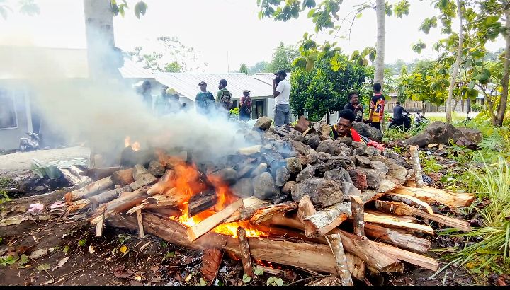 Tepat pada Senin, 24 November 2025 Masyarakat Adat Lapogo Kabupaten Lanny Jaya, Puncak Jaya dan Tolikara yang berada di Kota Sentani Kabupaten Jayapura menggelar tradisi makan bersama secara adat atau kearifan lokal yang biasanya di sebut Barapen.