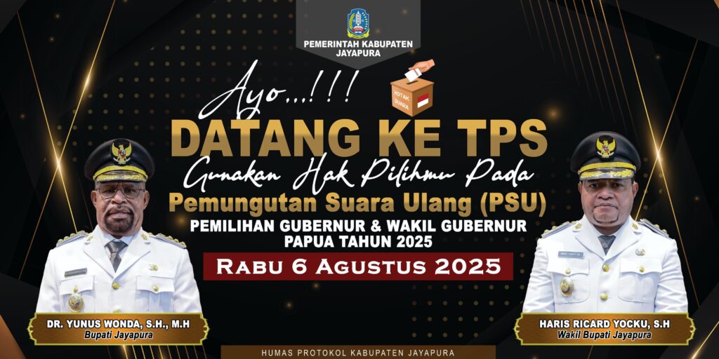 Suara Tabi – Menjelang pelaksanaan Pemungutan Suara Ulang (PSU) Pemilihan Gubernur dan Wakil Gubernur Provinsi Papua yang akan digelar pada Rabu, 6 Agustus 2025 dan juga menjelang peringatan HUT RI ke-80 tahun 2025. Pemerintah Kabupaten (Pemkab) Jayapura menggelar Rapat Koordinasi (Rakor) Forum Koordinasi Pimpinan Daerah (Forkopimda) Hotel Horison lantai satu, Kota Sentani Kabupaten Jayapura pada Senin, 4 Agustus 2025.