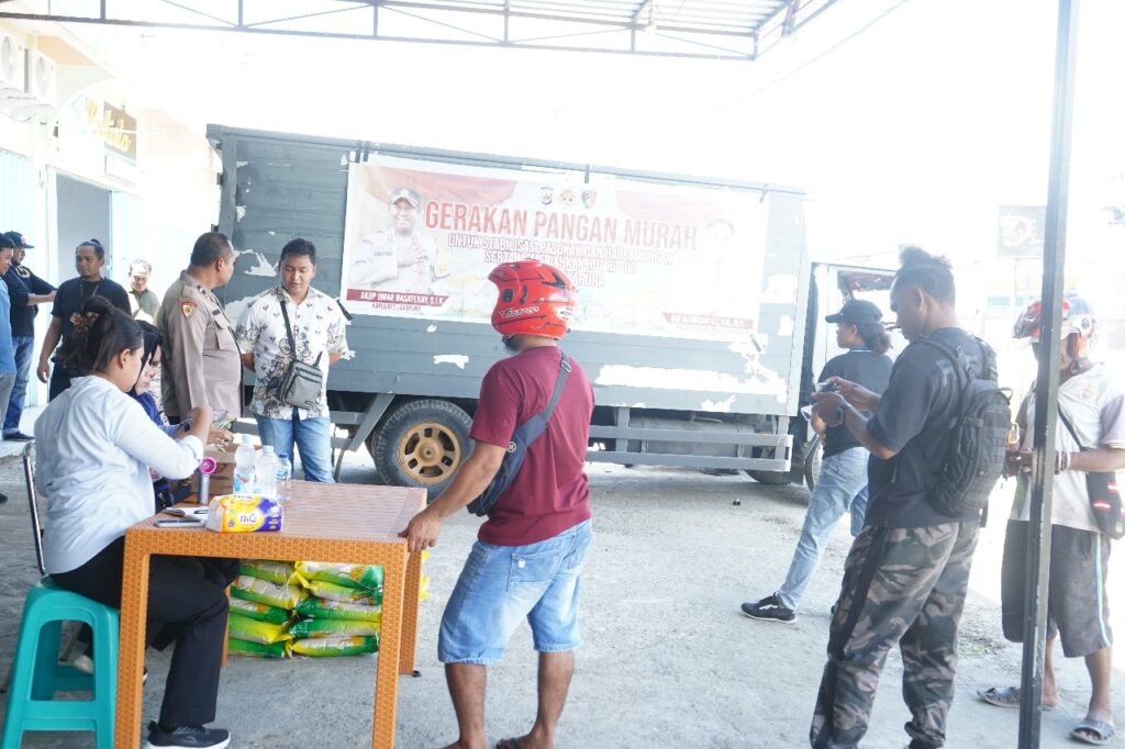Suara Tabi – Sentani, Polres Jayapura melaksanakan kegiatan Pangan Murah yang dipimpin oleh Kapolres Jayapura AKBP Umar Nasatekay, S.I.K., yang diwakili Kasat Reskrim Polres Jayapura, AKP Alamsyah Ali, S.H., M.H. Kegiatan ini digelar sebagai upaya membantu masyarakat mendapatkan kebutuhan pokok dengan harga yang lebih terjangkau di Sentani, Jumat (05/09).