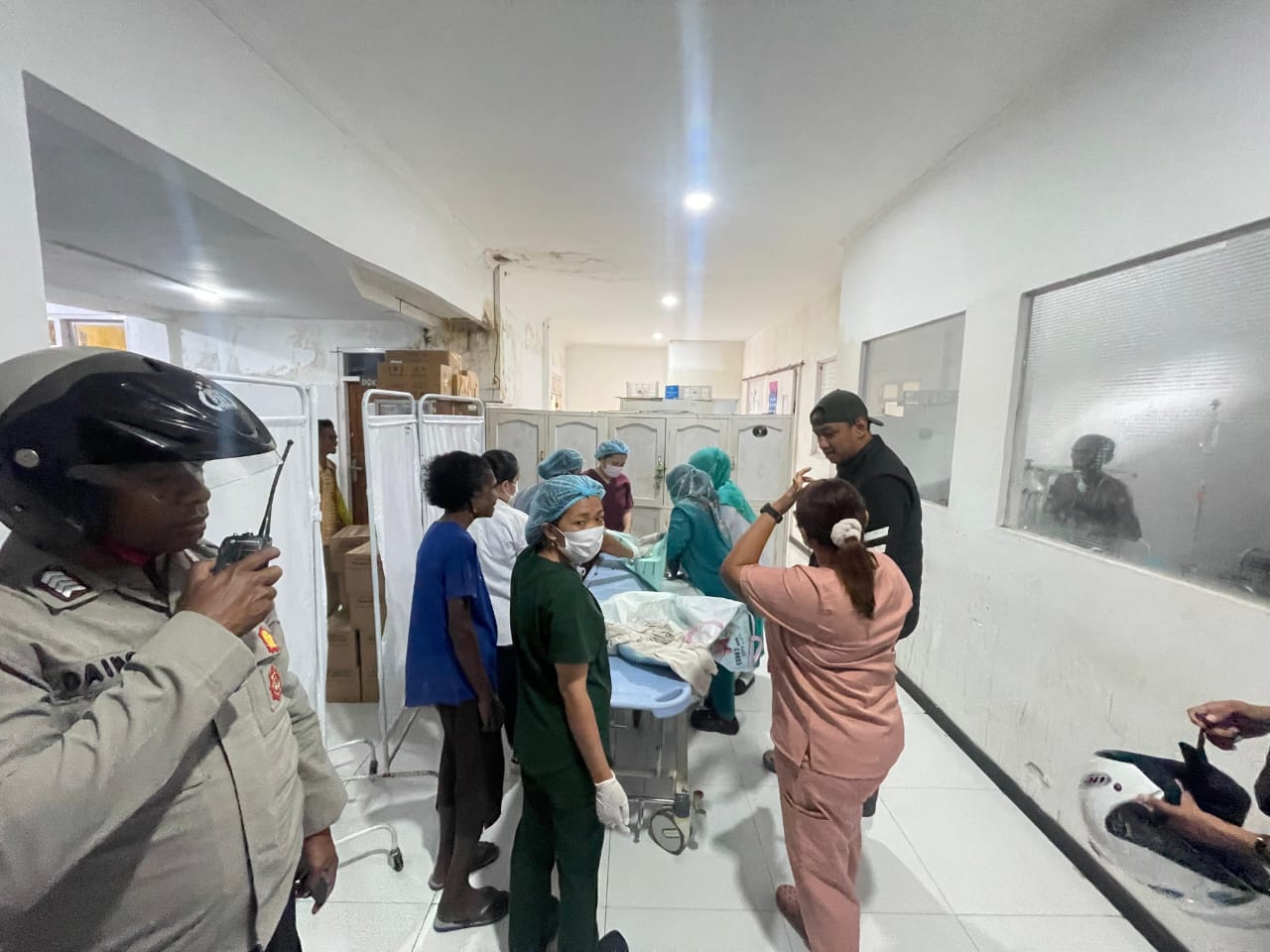 “Hasil pemeriksaan awal, bayi dalam keadaan hidup. Barang-barang yang turut diamankan berupa satu set baju bayi warna hijau, kain bayi warna putih, dan sebuah tas totebag warna biru. Saat ini bayi sudah ditangani pihak RSUD Yowari,” ujar Kasat Reskrim.
