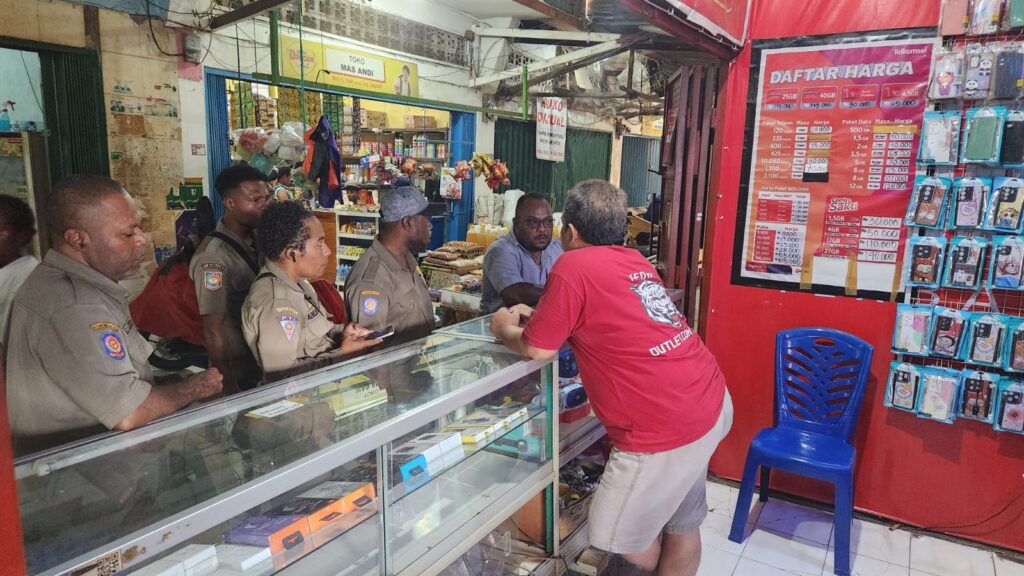 Suara Tabi – Satuan Polisi Pamong Praja ( Satpol – PP ) Kabupaten Jayapura pada Rabu, 5 November 2025 melakukan sidak di Pasar Pharaa Sentani, giat tersebut untuk memastikan setiap lapak memiliki izin usaha yang legal dan setoran retribusi yang sesuai mekanisme.